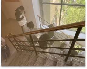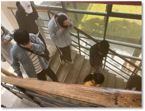13时30分,随着演练总指挥一声令下,消防警铃响起,演练正式拉开帷幕。模拟火情设定在教学楼,消防演习烟雾弹释放出滚滚浓烟。各楼层引导老师迅速就位,沉着冷静地组织员工用湿毛巾捂住口鼻、弯腰低姿,按照预定疏散路线快速、有序地向安全区域撤离。整个疏散过程紧张有序,全体师生在规定时间内安全到达集结地点,达到了预期效果。