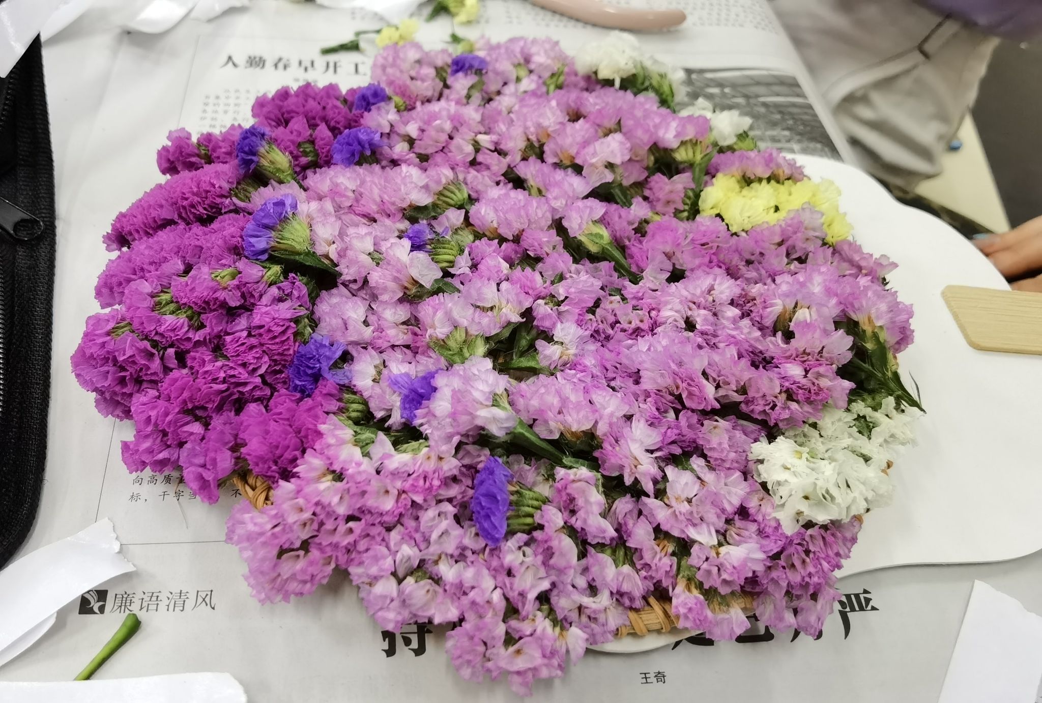 该活动通过“视觉—触觉—嗅觉”多维度刺激,达到艺术疗愈的效果。活动邀请员工处心理中心左婉容老师进行现场指导,参与者在左老师的引导下,伴随着舒缓的音乐,通过触摸不同质感花材,唤醒身体感知系统。参与员工代表创作《永恒的友谊》插花作品并分享:“本次插花活动不仅是技艺的施展,更是情感的寄托,它使我在繁忙生活中停下脚步,用自然之美传递心底暖意,这份体验会在往后的时光里,如花材“勿忘我”的花语一样,长久陪伴我。”
