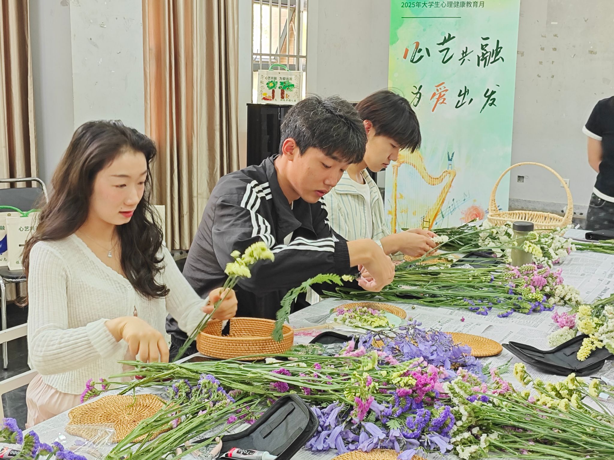 本次活动以“美育润心”为核心,将插花、绘画等艺术形式转化为心理育人载体,实现“以美育心、以心促学”的教育目标。