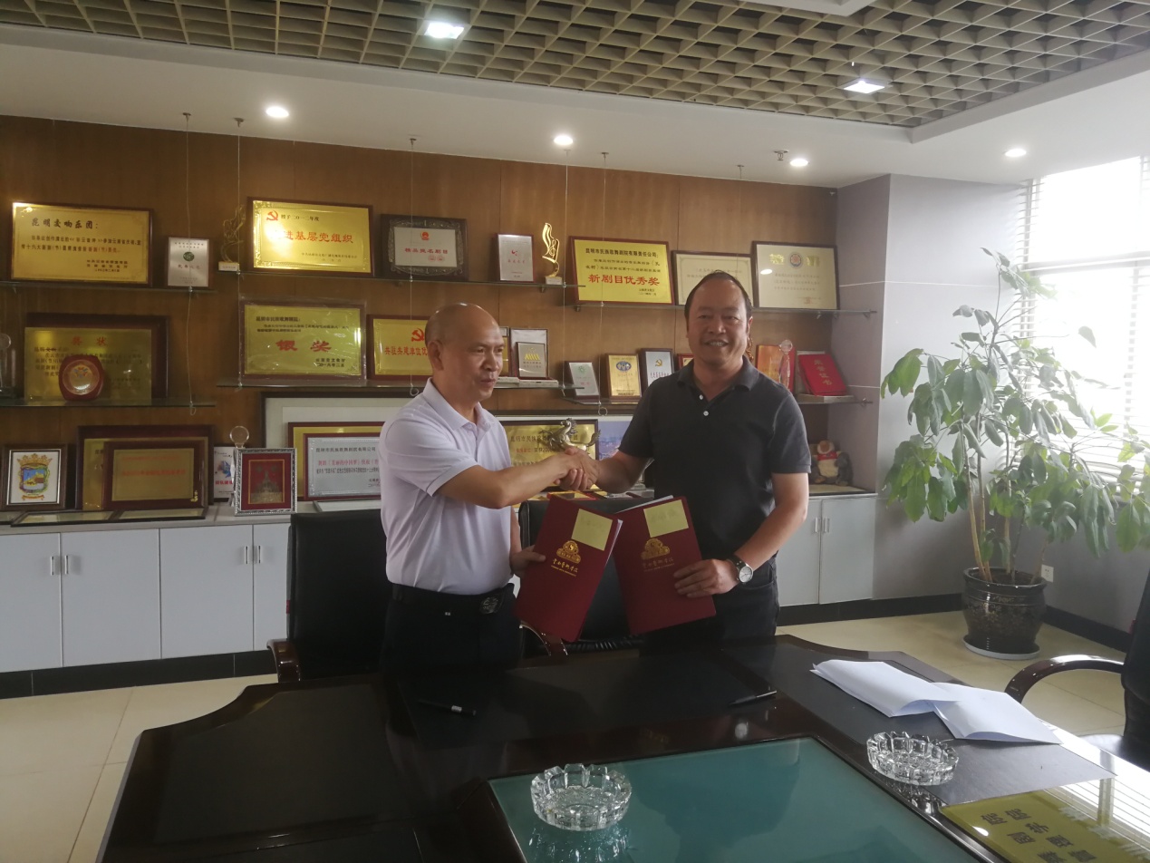 2026年国际足联世界杯傅永寿经理与昆明市民族歌舞剧公司党委书记、董事长包朝阳签合作协议