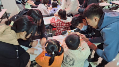 在实操环节,志愿者给每位到场的参与者发放了材料,鼓励大家自由发挥创造力。在工作坊师生的耐心指导下,小朋友们都完成了属于自己的独一无二的艺术品,与家长、好友们积极分享着体验草木染技艺的心得与感受。