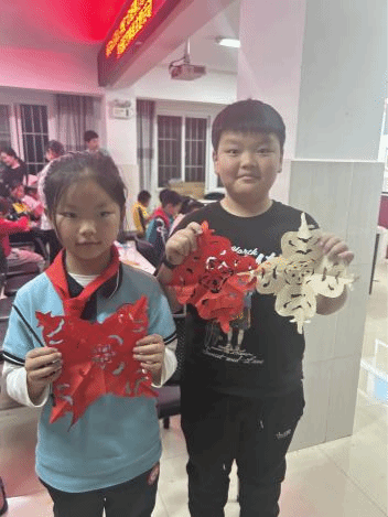 活动伊始,“回声”工作坊志愿者以生动的讲解带领孩子们追溯剪纸艺术的历史脉络。从纸张发明前的镂空雕刻技艺起源,到造纸术推动剪纸艺术正式诞生;从实用功能到独立艺术形式的演变,再到吉祥图案承载的情感价值,深入浅出的讲解让孩子们领悟到,剪纸不仅是技艺的展现,更是情感与祝福的传承载体。现场展示的传统团花与卡通形象剪纸作品,更点燃了孩子们对剪纸艺术的热情,互动环节气氛热烈。