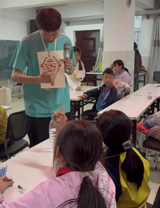 实践环节中,志愿者带领孩子们体验团花与套色剪纸创作。孩子们在指导下专注裁剪,或循传统技法精益求精,或大胆创新融入奇思妙想。工作坊成员与社区工作人员穿梭其间,从技法指导到创意激发全程陪伴,鼓励孩子们突破传统框架,自由表达个性。一页页纸张在稚嫩的手中化作灵动的图案,既展现了传统文化的生命力,也传递着新一代对艺术传承的热忱。
