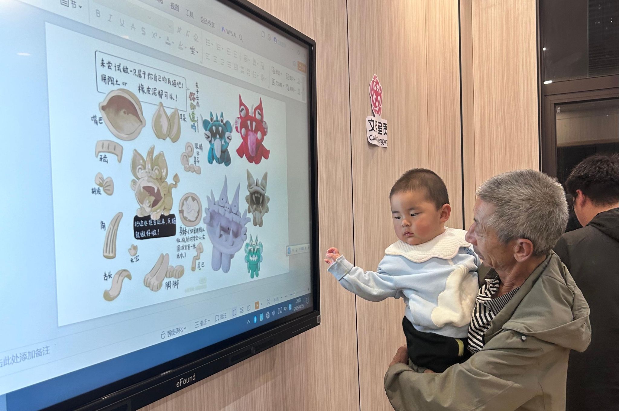 活动吸引了社区各个年龄段居民的热情参与,甚至包括蹒跚学步的孩童。幼小的孩子虽无法独立完成制作,却在家人怀中睁大双眼,好奇观察着每一道工序,稚嫩的心灵初次浸润于非遗的魅力。志愿者在指导基础技法的同时,鼓励居民们突破传统框架,以创意赋予瓦猫新意。童趣与匠心交织,展现了传统文化在当代社区中传承与创新的生动图景。