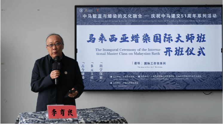李育良会长强调了中国与马来西亚之间深厚的历史渊源与文化交融。他指出,中国靛蓝染料与马来西亚的蜡染技艺虽源于不同的文化背景,却体现了各自民族对美的追求与对传统的坚守,也成为跨越中马建交51年历程的文明底色,彰显出两国人民对自然的共同敬畏与礼赞。