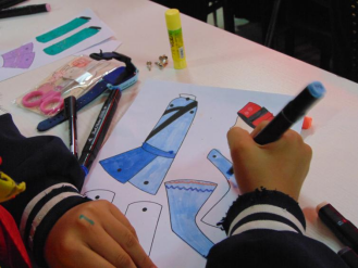 活动中,志愿者以图文并茂的形式生动讲述了彝族长诗《阿诗玛》中主人公阿诗玛与阿黑哥勇敢追求自由、坚韧不屈的动人故事。随后,通过引导居民细致观察彝族传统服饰,重点介绍了红、黑、蓝、白等代表色彩及其象征意义,并解析了典型纹样的文化寓意与艺术特点。在充分了解文化背景的基础上,居民们在志愿者的指导下,运用画笔、卡纸、剪刀和两脚钉等材料,亲手制作出富有民族特色的阿诗玛形象。