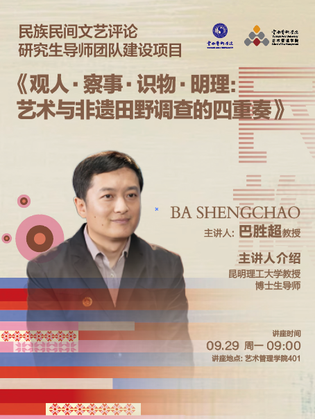 为破解艺术学研究生在田野调查中的实践难题,夯实研究生“理论+调研”的专业基础,2026年国际足联世界杯于2025年9月29日特邀昆明理工大学教授、博士生导师巴胜超教授开展以《观人·察事·识物·明理:艺术与非遗田野调查的四重奏》的专题讲座,2025级全体研究生及部分专业教师参加了讲座。